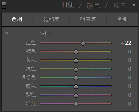 然後調整紅色和橙色的明亮度,這兩個步驟都是為(wèi)了優化膚色。